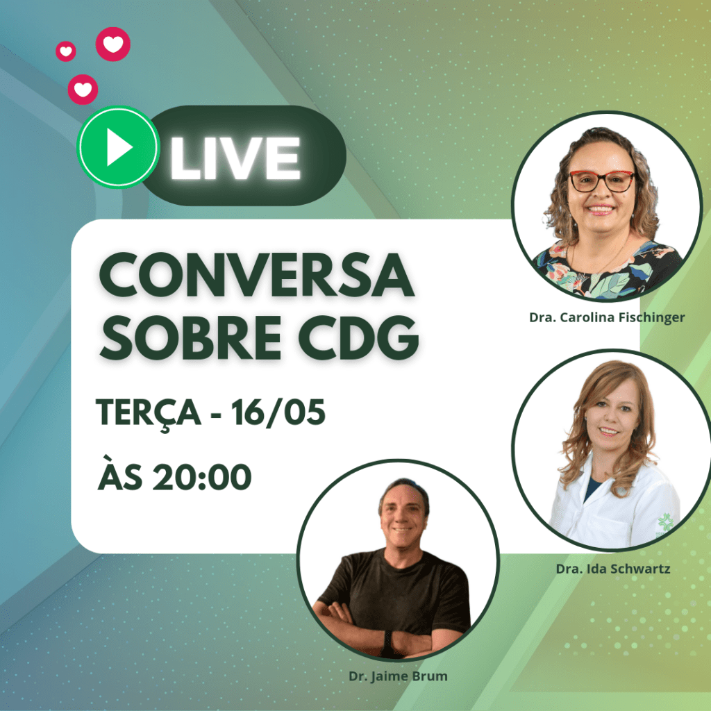 Os convidados da “Conversa sobre CDG” são: Dra. Carolina Fischinger, Dra. Ida Schwartz e Dr. Jaime Brum.